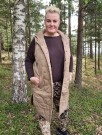 Vattert vest med hette. Den lange vesten lukkes med attraktive trykknapper langs hele fronten, og foran er det to justerbare lisser ved hetten. Den har to lommer som kan lukkes med trykknapper. Vesten har en avrundet bunn og en splitt på hver side.